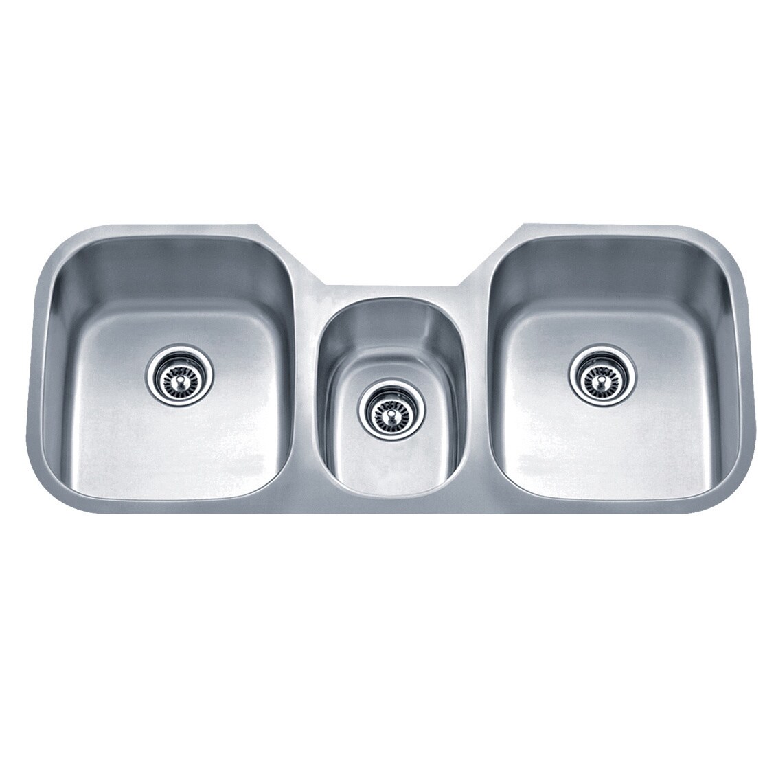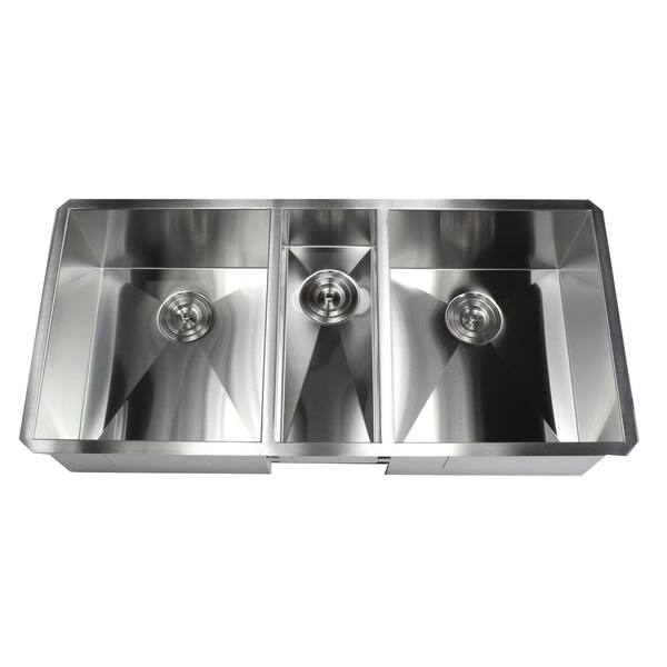 Every 3 compartment sink available on RestaurantSupply.com is manufactured from corrosion-resistant stainless steel. Some models are made from different grades of stainless steel, but each is durable and easy to keep clean. Rounded corners and raised rolled top edges make working in and around the sinks safer. The Best Stainless Steel Sinks Available Anywhere. We have Single, Double and Triple Bowel Kitchen Stainless Steel Sinks at Wholesale Prices to the Public. Undermount 42.75-in x 20.75-in Stainless Steel Triple Bowl Kitchen Sink. Model #4521-18. Compare; Find My Store. for pricing and availability. Franke ... 4521 Triple Bowl Stainless Steel Kitchen Sink,